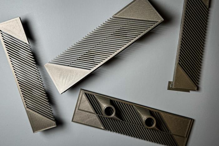 Engineers fabricated a simple water filter modeled after the mobula ray’s plankton-filtering features. Pictured are pieces of the filter.