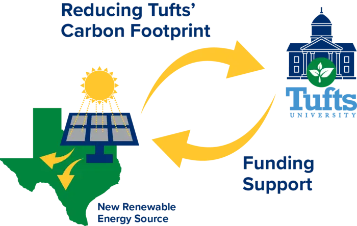 For its participation in the initiative, Tufts receives Renewable Energy Credits (RECs) that account for a reduction of about 12% of the university’s carbon emissions, bringing Tufts significantly closer to reaching its own decarbonization goal.