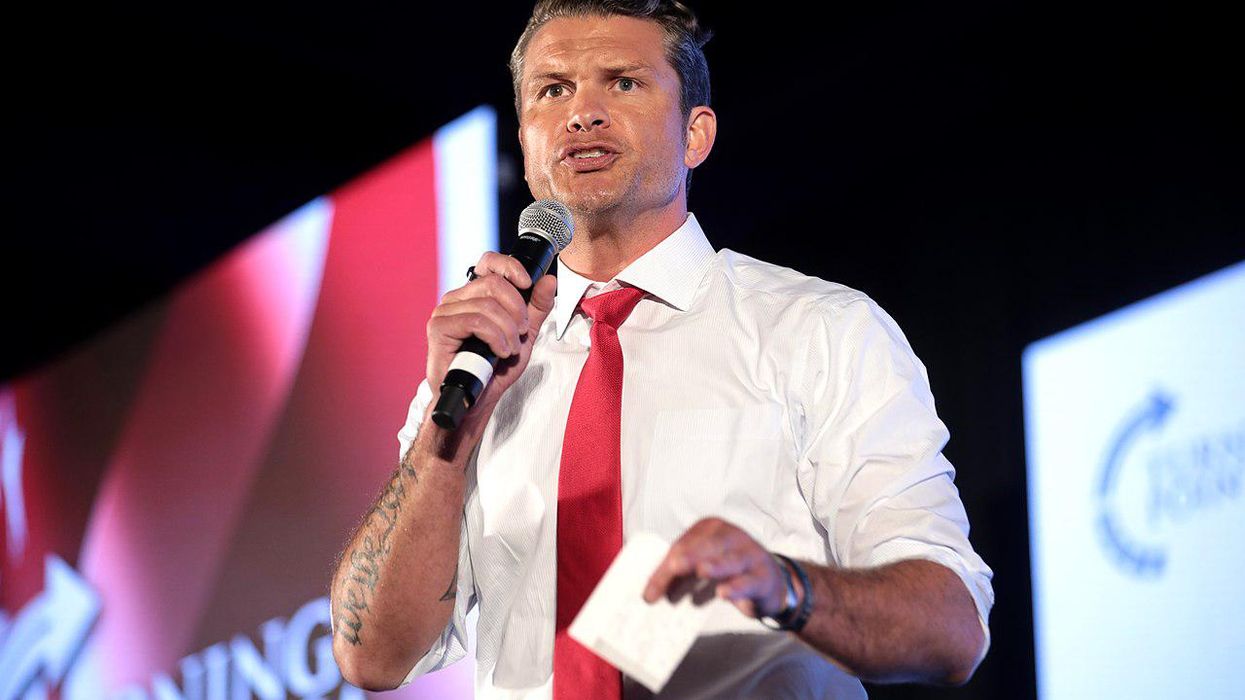 Fox News' Pete Hegseth speaking at the 2019 Teen Student Action Summit, hosted by Turning Point USA at the Marriott Marquis in Washington, D.C., Gage Skidmore