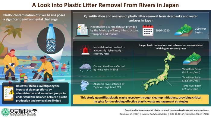 Against this backdrop, a research team led by Assistant Professor Mamoru Tanaka of Tokyo University of Science (TUS) decided to conduct the first nationwide-level analysis of plastic litter removal from rivers in Japan. As explained in their latest paper, which was published online in the Marine Pollution Bulletin on November 1st, 2024, the team quantified the annual recovery of plastic waste from river banks and water surfaces using a dataset provided by the Ministry of Land, Infrastructure, Transport and Tourism. Ms. Yumena Okada, who graduated from TUS in 2022, also participated in the study.