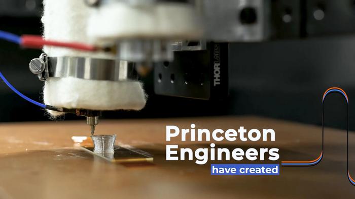 The researchers have shown their technique’s ability to incorporate functional additives into the thermoplastic elastomer without reducing the ability to control material properties. In one example, they added an organic molecule developed by Professor Lynn Loo’s group that makes the plastic glow red after exposure to ultraviolet light. They also demonstrated the printer’s ability to produce complex and multi-layered structures including a tiny plastic vase and printed text that used sharp turns to spell out PRINCETON.