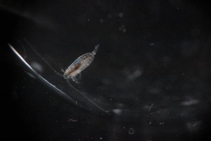 A study led by Dartmouth researchers shows that microscopic marine animals called zooplankton (pictured) can be enticed to ingest organic carbon particulates in seawater that are later confined to the deep ocean in the animals' feces. The researchers found that clay sprayed on the water's surface bonds with the carbon, creating sticky balls that become part of the ravenous little creatures' daily smorgasbord.
