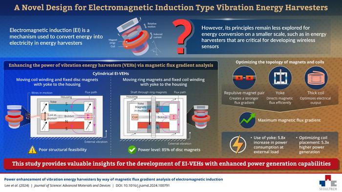 With this motivation, a team of researchers from the Republic of Korea, led by Associate Professor Dahoon Ann from the Department of Mechanical System Design Engineering at Seoul National University of Science and Technology (SeoulTech), focused on cylindrical EI coils and magnet cores, the most commonly used components in energy harvesters, to come up with a novel design for energy-efficient and high-power-output EI-type vibration energy harvesters (VEHs). “This can help achieve higher power output in a smaller volume. If such energy harvesters are realized, it could herald a future where all battery-powered devices use energy harvesters as their primary power source,” claims Dr. Ahn.