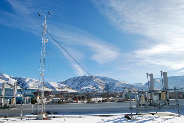 Rooftop atmospheric monitoring equipment on the Unviersity of Utah's Salt Lake City campus.