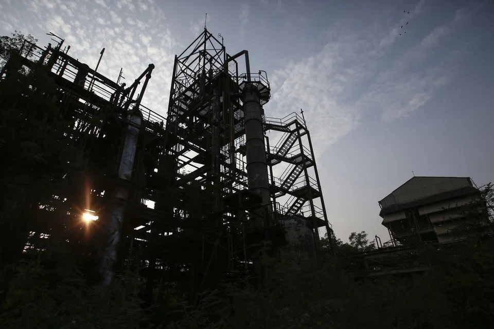 FILE PHOTO: The sun sets behind the abandoned former Union Carbide pesticide plant in Bhopal November 11, 2014. REUTERS/Danish Siddiqui/File Photo