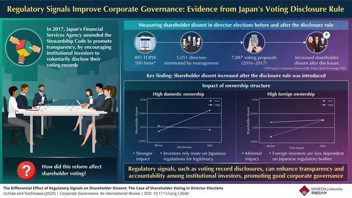 The researchers explain that domestic institutional investors—such as local banks, trust banks, and insurance companies—are more likely to respond to local regulations because they rely on local regulatory bodies for legitimacy, whereas foreign institutional investors, who often adhere to international standards, are less influenced by domestic regulations. “Our theory and findings show that domestic institutional investors tend to diverge from foreign institutional investors in response to regulatory signals due to their different levels of dependence on the legitimacy conferred by regulatory bodies, even though they all fall under the same label of institutional investors. This suggests that shareholder preferences are not only heterogeneous but also mutable over time,” says Yoshikawa.