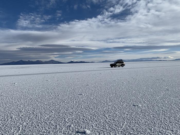 The Salar de Uyuni stretches 2.5 million acres across a high plateau in Bolivia.