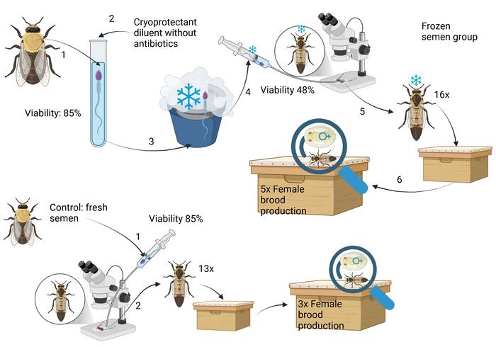 "Bees play a crucial role in the ecosystem and agriculture," explains Sophie Egyptien, a doctoral researcher at ULiège and the lead author of the article. "Unfortunately, their populations are declining in many regions of the world. The conservation of their genetic material, such as drone semen, is a key strategy to preserve biodiversity and support breeding programmes." Cryopreservation is a research area with very few scientific teams working on it globally. It not only allows for the preservation of valuable genetic lines but also helps overcome restrictions related to the international transport of live animals.