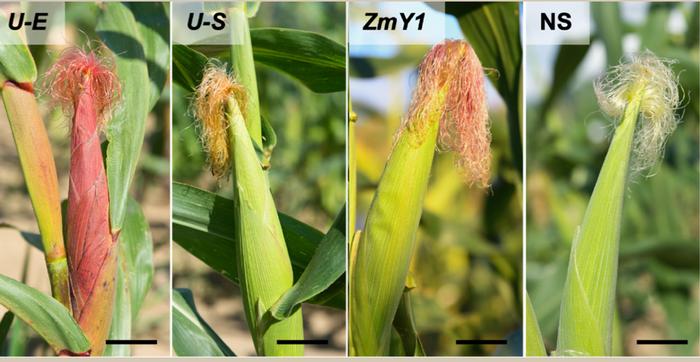 The flavonoids that provide insecticide-like protection to some corn lines against corn earworm larvae also provide pigments to the plants that show up in the silks, husks and kernels. Pictured here are the lines used in the research.