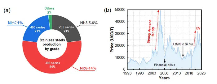 More than 70% of the world's supply of nickel is used t nio make stainless steel, a cost-effective, strong, corrosion resistant alloy widely used for construction, transportation, development of medical devices and more. However, fluctuations in globalckel supply over the past two decades have posed significant challenges to maintaining stable production, according to a team of researchers at Tohoku University and Tsinghua University.