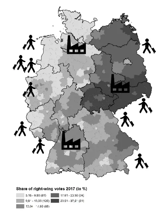Labor market immigrants moving to Germany are less likely to make their first choice of residence in regions where xenophobic attitudes, measured by right-wing party support and xenophobic violence, are stronger, per 2004-2017 data