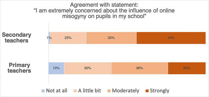Analysis of the survey data showed that 76 percent of the secondary and 60 percent of the primary school teachers reported extreme concern about the influence of online misogyny on their students.