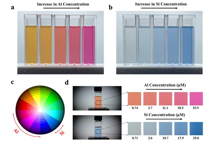 The team ran many experiments to calibrate the colors corresponding to the clay solution’s aluminum and silicon concentrations. With increasing concentrations of aluminum and silicon, the solutions show stronger pink and blue colors, respectively, the study reports.