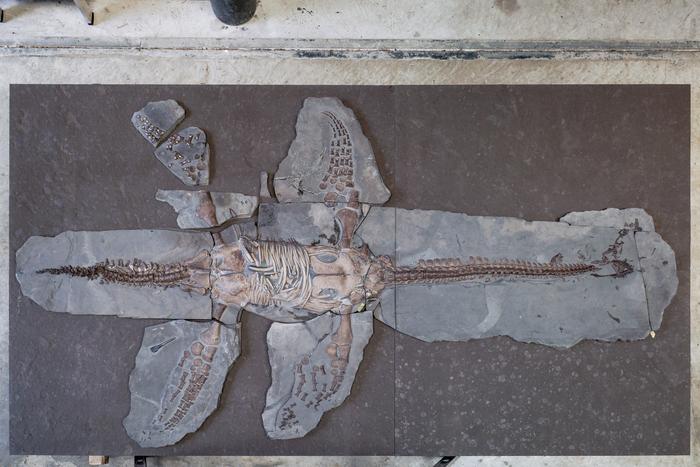 Skeleton of the new plesiosaur at the Urwelt-Museum Hauff in Holzmaden, Germany.