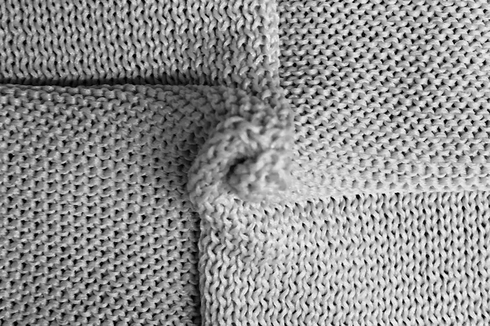 A close-up of a self-folding knitted fabric, demonstrating how specific stitch patterns—knits and purls—encode geometric rules that dictate the material’s three-dimensional shape. Researchers from Penn and Drexel have developed a mathematical model that predicts these folding behaviors, opening new possibilities for programmable textiles in fields ranging from soft robotics to deployable structures.