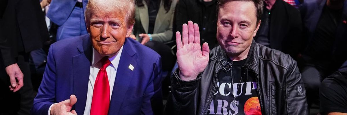 Then President-elect Donald Trump and Elon Musk pose for a photo during the UFC 309 event at Madison Square Garden on November 16, 2024 in New York City.