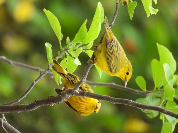 Female, left, and male Galapagos Yellow Warbler - picture by Caglar Akcay, Anglia Ruskin University