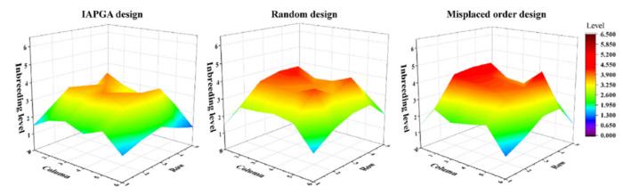 Influence extent of inbreeding on the clones of each position with different seed orchard design methods