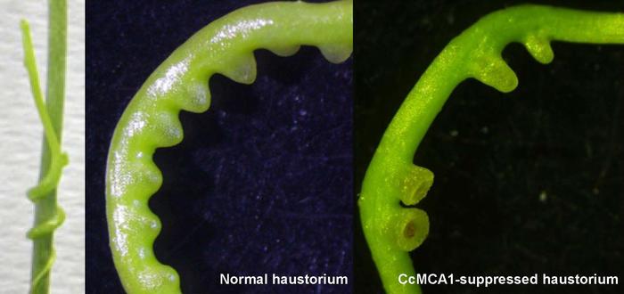 Professor Aoki led an OMU team in discovering that when the expression of the gene Cuscuta campestris MID1-COMPLEMENTING ACTIVITY1 (CcMCA1) was suppressed, the number of haustorium per centimeter decreased.