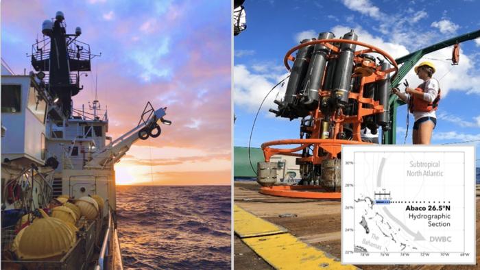The research team, which includes NOAA’s Atlantic Oceanographic and Meteorological Laboratory, analyzed long-term oceanographic data on deep ocean waters below 2,000 meters taken from the 26.5°N hydrographic line. Located offshore of Abaco Island in the Bahamas, this key reference line is vital for studying changes in ocean currents and water mass properties in the Atlantic.