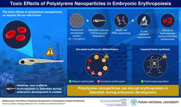 A study led by Professor Yun Hak Kim from Pusan National University, which was made available online on November 30, 2024, and published in Volume 46, Issue 1, Jan 2025 in Zoological Research explores how polystyrene nanoparticles affect RBC development in zebrafish embryos.