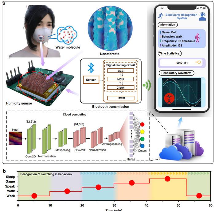 A cutting-edge humidity sensing system has been unveiled, capable of monitoring human behaviors in real-time through the detection of respiratory patterns. This breakthrough technology integrates a highly sensitive humidity sensor with a thermistor and micro-heater, enabling exceptional accuracy in behavior recognition. By using porous nanoforests as the sensing material, the system exhibits remarkable sensitivity, stability, and gas selectivity. With the added power of machine learning algorithms, the system achieves an impressive 96.2% accuracy in identifying human behaviors, positioning it as a game-changer in healthcare, smart homes, and everyday health monitoring.