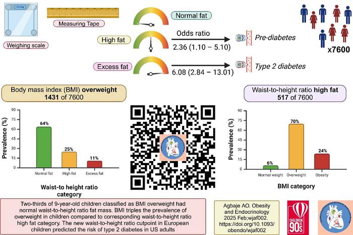 Waist circumference-to-height ratio is a non-invasive and inexpensive tool for measuring fat mass overweight and obesity (adiposopathy) in paediatric practice. The QR code links to a waist-to-height ratio calculator developed on the basis of this study. Image: Andrew Agbaje.