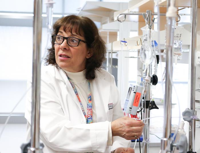 Karen Giuliano, nursing co-director of the Elaine Marieb Center for Nursing and Engineering Innovation, does research in the center's IV lab.