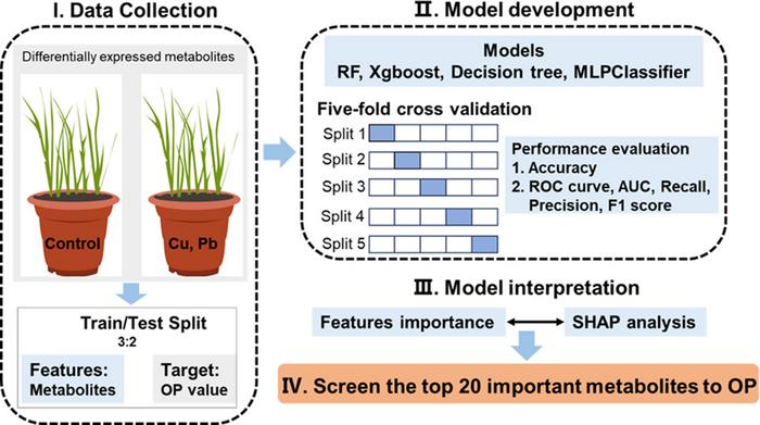 This study offers significant implications for environmental monitoring and soil remediation strategies. By adopting oxidative potential (OP) as a standard measurement, we can more efficiently assess the impact of pollutants on plant health, enabling faster and more targeted interventions. The integration of machine learning and metabolomics in this context opens new avenues for enhancing ecological risk assessments, improving soil management, and reducing the environmental impact of heavy metal contamination. The application of this approach in other types of pollutants can be further explored, thereby offering a versatile tool for a range of environmental challenges.