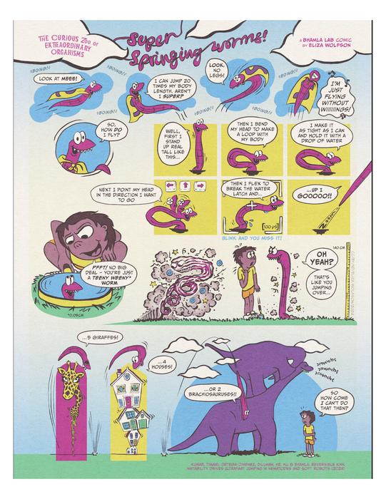 The group found that the kinks allow nematodes to store more energy with each jump. They rapidly release it — in a tenth of a millisecond — to leap, and they’re tough enough to repeat the process multiple times.