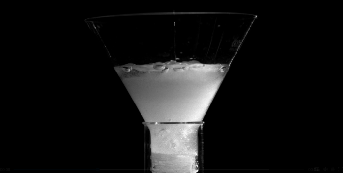 A high-speed camera catches water penetrating the simulated coffee bed. By modeling how the jet interacts with the grounds, the team found the most efficient flow pattern for extracting flavor with fewer beans.