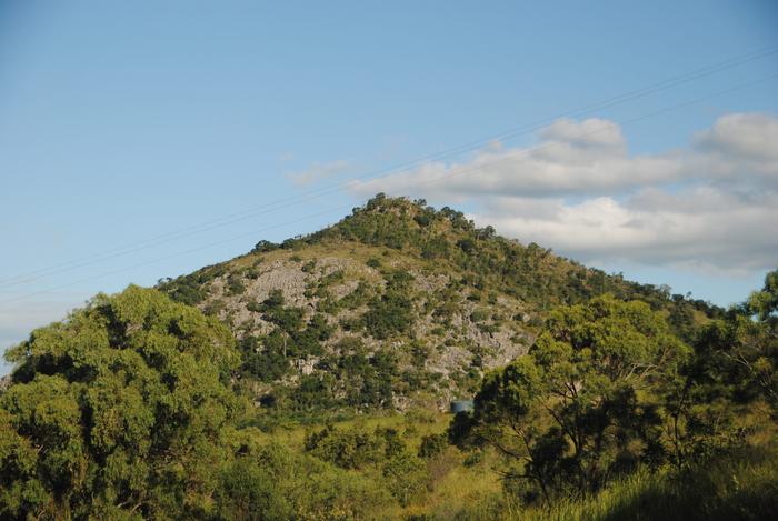 An image of the field site, Mount Etna, Rockhampton, central-eastern Queensland. Caves can be found on the western flank of Mount Etna.