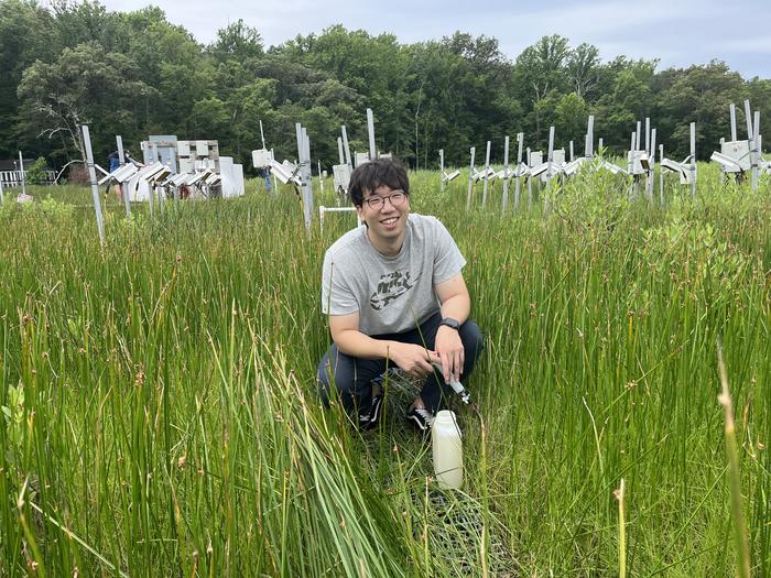 Jaehyun Lee collects a porewater sample in the SMARTX experiment, at the Smithsonian Environmental Research Center in Maryland.