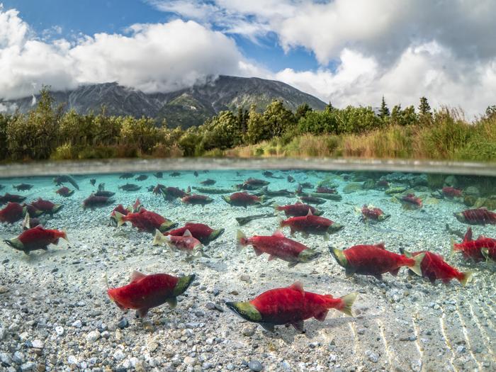 Wild sockeye salmon in Bristol Bay, Alaska. Bristol Bay is one of the North Pacific river systems central to Wild Salmon Center's stronghold strategy for salmon conservation.