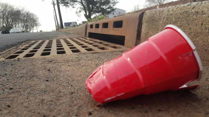 Red solo cup in gutter