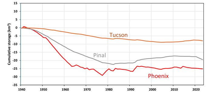 The research findings on the Arizona aquifers are just one aspect of the study, which tracked surface water and groundwater gains and losses across the entire Colorado River Basin over decades. The researchers drew on GRACE satellite data, regional models and groundwater level monitoring data to show how water levels have changed in response to wet and dry periods and human interventions.
