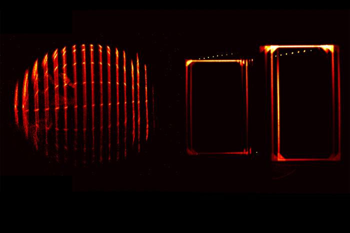 “We moved a cube and a sphere around the lab and used the high-speed camera to record the laser flashes reflected from different points on these objects at different times,” explain Victoria Helm and Dominik Hornof, the two students who carried out the experiment. “If you get the timing right, you can create a situation that produces the same results as if the speed of light were no more than 2 metres per second.”