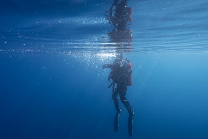 Brant Allen of UC Davis Tahoe Environmental Research Center dives in Lake Tahoe.