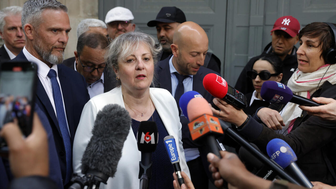 President Federation Nationale du Taxi (FNDT) Emmanuelle Cordier answers journalists' questions after a meeting between France's Prime Minister Francois Bayrou and representatives of taxis drivers outside the Ministry of Transport in Paris on May 24, 2025. © Geoffroy Van der Hasselt, AFP