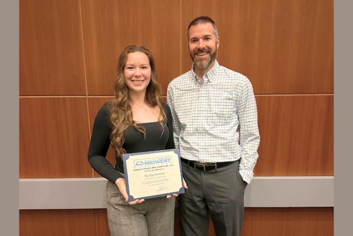 University of Illinois Urbana-Champaign researchers Kaitlyn Sommer (left) and Ryan Dilger (right) studied the effect of feeding style on growth of piglets, leading to insights for both production agriculture and biomedical studies using the pig model.
