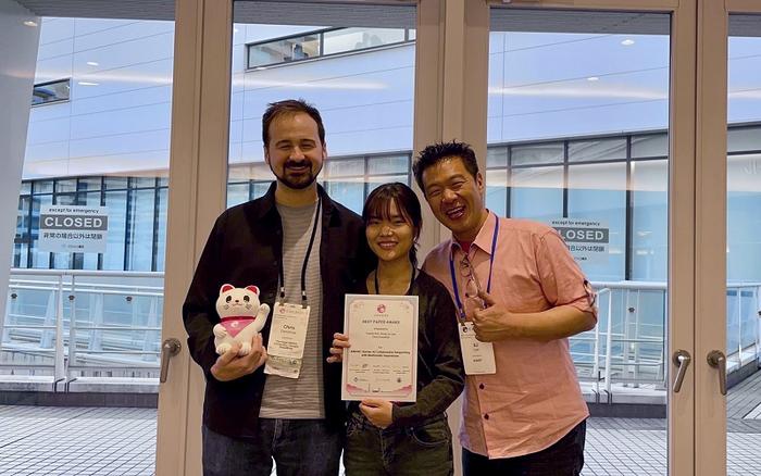 (From left) Professor Chris Donahue of Carnegie Mellon University, Ph.D. Student Yewon Kim and Professor Sung-Ju Lee of the School of Electrical Engineering