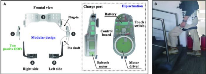 Recent advances in hip exoskeleton control have demonstrated potential in enhancing human mobility across diverse terrains. However, achieving seamless adaptation to continuous locomotion modes (e.g., level-ground walking, stair ascent/descent) without user-specific data training remains a significant challenge. "By integrating depth-enhanced visual-inertial odometry and terrain reconstruction, our learning-free method eliminates dependency on datasets while maintaining high prediction accuracy across subjects," explained corresponding author Qining Wang, a professor at Peking University. The proposed three-layer control framework incorporates (a) a depth camera for real-time environment mapping, (b) pressure insoles for gait phase detection, and (c) physics-driven torque/damping strategies tailored to biomechanical profiles. "This approach ensures smooth transitions between control modes by predicting terrain changes before the end of transition periods," added lead author Zhaoyang Wang.