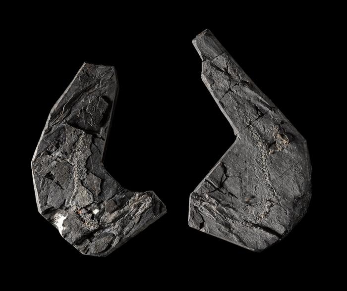 The fossil of the Westlothiana lizziae, which was found in the East Kirkton Quarry in West Lothian, Scotland.