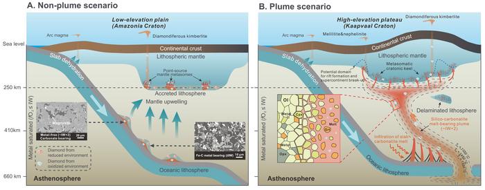 A new study published in Science Advances by researchers from the Guangzhou Institute of Geochemistry of the Chinese Academy of Sciences (GIG-CAS), along with international collaborators, reveals that deeply subducted carbonates can cause significant variations in the redox states of Earth's mantle. This process influences the formation of sublithospheric diamonds and plays a role in the long-term evolution of cratons—ancient stable parts of the continental lithosphere.
