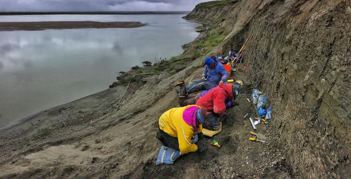 Scientists excavate at the site on the Colville River where many of the fish fossils were found.