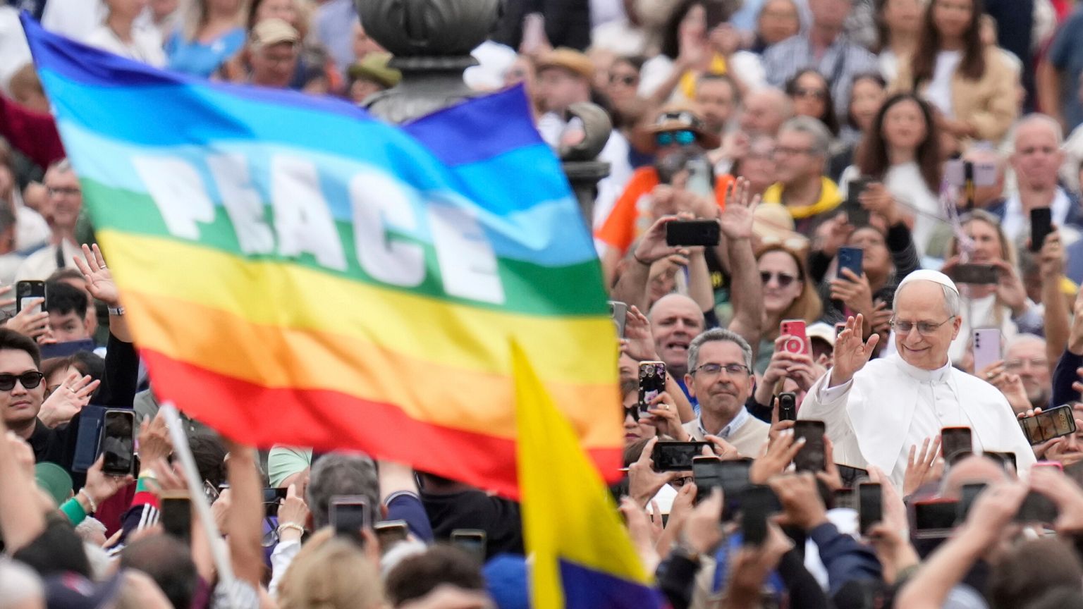Pope Leo XIV waves as he arrives for his first weekly general audience in St Peter's Square at The Vatican, 21 May, 2025AP Photo