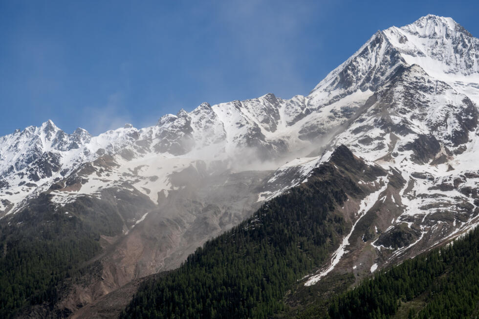 The Birch glacier in Switzerland’s southern Valais (Wallis) region collapsed on Wednesday, sending a mass of rock, ice and scree hurtling down the mountain slope and into the valley below.