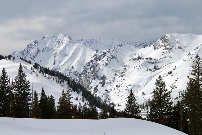 Snow-filled head of Utah's Little Cottonwood Canyon in April 2018.