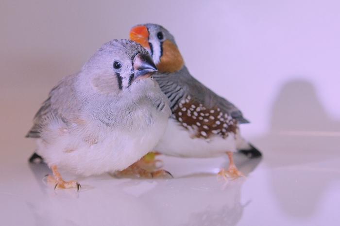 An adult zebra finch tutor (right) and young pupil (left).