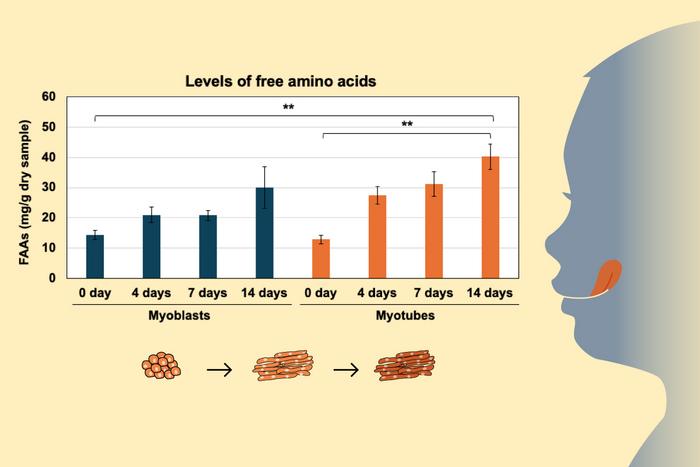 “The levels of free amino acids decreased during differentiation but increased during aging.” says senior author, Shoji Takeuchi. “The surprise was that the levels of free amino acids in cultured muscle cells were actually double those in conventional beef.”